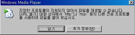 [윈도우미디어] 미디어플레이어 에서 지정한 프로토콜이 지원되지 않습니다.