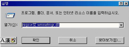 3. 시작 ---> 실행 ---> 커멘트 넣는 란에 regsvr32 wmnetmgr.dll 넣고 엔터