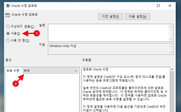 [윈도우10 원격데스크톱 오류 CredSSP 암호화 Oracle 수정 때문]