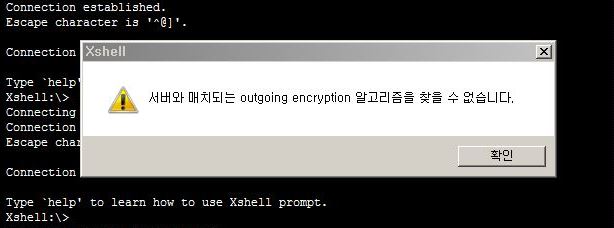 ssh 접속 툴에서 "서버와 매치되는 outgoing encryption 알고리즘을 찾을 수 없습니다."  하고 나올 때