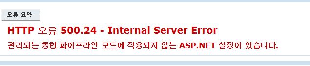 [asp오류]관리되는 통합 파이프라인 모드에 적용되지 않는 ASP.NET 설정이 있습니다