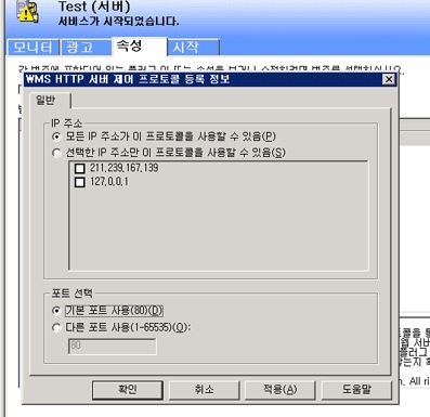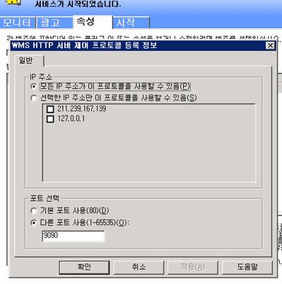 "WMS HTTP 서버 제어 프로토콜"도 이상 없이 작동시킬 수 있습니다. 혹시 미디어 서버에서 80포트를 사용하고 있지 않다면 재시작시 80포트가 자동으로
