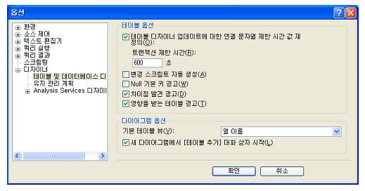 MSSQL SERVER Management 에서 메뉴 > 도구 > 옵션  에들어가서