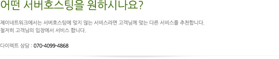 제이네트워크에서는 서버호스팅에 맞지 않는 서비스라면 고객님께 맞는 다른 서비스를 추천합니다.