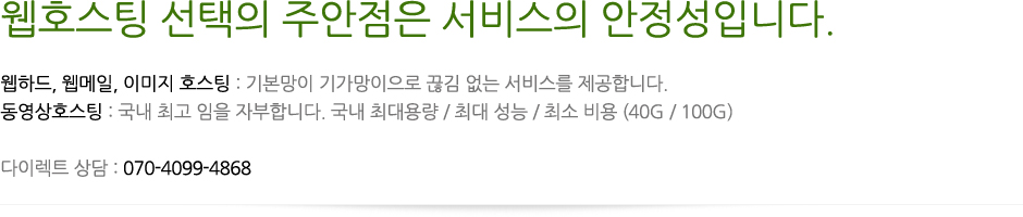 웹호스팅 선택의 주안점은 서비스의 안정성입니다.